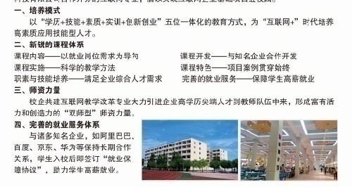 互聯網學院,培養“互聯網+”、“人工智能”新時代背景下高素質應 用技能型人才,打造產教融合發展創新生態。 合作院校14所。