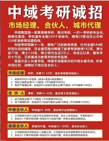 中域集團是一家集高端考研、集訓考研、一對一考研的專業化、規模化集團,學校遍布全國260個地級市,擁有20家成員公司和300多家教育加盟機構。