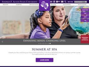 斯蒂芬·F·奧斯汀州立大學成立于1923年,是一所非營利性公立州立高等教育機構,位于德克薩斯州納科多奇斯(Nacogdoches)(人口范圍為10000-49999人)小鎮的農村地區。Stephen F.Austin州立大學(SFASU)是一所規模較大(uniRank招生范圍:10000-14999名學生)男女同校的美國高等教育機構,由南方學院協會學院委員會正式認證。Stephen F.Austin州立大學(SFASU)提供課程和項目,以獲得官方認可的高等教育學位,如若干研究領域的學士學位、碩士學位、博士學位。有關更多詳細信息,請參見下面的uniRank學位等級和學習領域矩陣。這所擁有97年歷史的美國高等教育機構根據入學考試和學生過去的學習成績和成績實行選擇性錄取政策。入學率在60-70%之間,這使得這個美國高等教育機構在某種程度上具有選擇性。國際申請人有資格申請入學。SFASU還為學生提供若干學術和非學術設施和服務,包括圖書館、住房、體育設施、經濟援助和/或獎學金、出國留學和交流計劃、在線課程和遠程學習機會,以及行政服務。