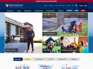 Shenandoah大學成立于1875年,是一所非營利性私立高等教育機構,位于弗吉尼亞州溫徹斯特大城鎮(人口范圍為10000-49999人)的城市環境中。Shenandoah大學(SU)是一所規模較小(uniRank招生范圍:5000-5999名學生)的男女同校美國高等教育機構,正式隸屬于基督教衛理公會,由南方學院協會學院委員會正式認證。Shenandoah大學(SU)提供獲得官方認可的高等教育學位的課程和計劃,如若干研究領域的學士前學位(即證書、文憑、副學士或基礎)、學士學位、碩士學位。有關更多詳細信息,請參見下面的uniRank學位等級和學習領域矩陣。這所擁有145年歷史的美國高等教育機構根據入學考試和學生過去的學習成績和成績實行選擇性錄取政策。入學率在70-80%之間,這使得這家美國高等教育機構在某種程度上具有選擇性。國際申請人有資格申請入學。SU還為學生提供一些學術和非學術設施和服務,包括圖書館、住房、體育設施、經濟援助和/或獎學金、留學和交流計劃、在線課程和遠程學習機會,以及行政服務。