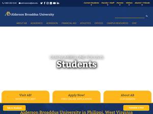 Alderson Broaddus大學(xué)成立于1871年,是一所非營利性私立多學(xué)科高等教育機(jī)構(gòu),位于西弗吉尼亞州中部小鎮(zhèn)Philippi(人口2500-9999)的農(nóng)村地區(qū)。Alderson Broaddus大學(xué)(A-B)經(jīng)高等教育委員會正式認(rèn)證,是一所規(guī)模非常小(uniRank招生范圍:1000-1999名學(xué)生)的男女同校美國高等教育機(jī)構(gòu),正式隸屬于基督教浸禮會。Alderson Broaddus大學(xué)(A-B)提供獲得官方認(rèn)可的高等教育學(xué)位的課程和計(jì)劃,如若干研究領(lǐng)域的學(xué)士前學(xué)位(即證書、文憑、副學(xué)士或基礎(chǔ))、學(xué)士學(xué)位、碩士學(xué)位。有關(guān)更多詳細(xì)信息,請參見下面的uniRank學(xué)位等級和學(xué)習(xí)領(lǐng)域矩陣。這所擁有149年歷史的美國高等教育機(jī)構(gòu)根據(jù)入學(xué)考試和學(xué)生過去的學(xué)習(xí)成績和成績實(shí)行選擇性錄取政策。入學(xué)率在40-50%之間,這使得這家美國高等教育機(jī)構(gòu)成為一所普通的選擇性院校。歡迎國際學(xué)生申請入學(xué)。A-B還為學(xué)生提供若干學(xué)術(shù)和非學(xué)術(shù)設(shè)施和服務(wù),包括圖書館、住房、體育設(shè)施、經(jīng)濟(jì)援助和/或獎(jiǎng)學(xué)金、出國留學(xué)和交流計(jì)劃、在線課程和遠(yuǎn)程學(xué)習(xí)機(jī)會,以及行政服務(wù)。