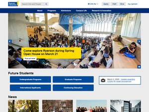 瑞爾森大學成立于1948年,是一所非營利性公立高等教育機構,位于安大略省多倫多大都市(人口范圍為1000000-5000000)。瑞爾森大學(RU)是加拿大一所大型男女同校高等教育機構,由安大略省培訓、學院和大學部正式認可(uniRank招生范圍:25000-29999名學生)。瑞爾森大學(RU)提供獲得官方認可的高等教育學位的課程和計劃,如若干研究領域的學士前學位(即證書、文憑、副學士或基礎)、學士學位、碩士學位、博士學位。有關更多詳細信息,請參見下面的uniRank學位等級和學習領域矩陣。這所擁有72年歷史的加拿大高等教育機構根據入學考試和學生過去的學習成績和成績實行選擇性錄取政策。歡迎國際學生申請入學。RU還為學生提供若干學術和非學術設施和服務,包括圖書館、住房、體育設施、經濟援助和/或獎學金、出國留學和交流計劃、在線課程和遠程學習機會,以及行政服務。