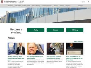 圣托馬斯莫爾學院成立于1936年,是一所非營利性公立高等教育機構,位于薩斯喀徹溫省中等城市薩斯卡通(人口范圍為250000-499999人)的城市環境中。圣托馬斯莫爾學院是由薩斯喀徹溫省高等教育部正式認可的一所小型(uniRank招生范圍:2000-2999名學生)男女同校的加拿大高等教育機構,正式隸屬于基督教。圣托馬斯莫爾學院提供課程和項目,在幾個研究領域獲得官方認可的高等教育學位。有關更多詳細信息,請參見下面的uniRank學位等級和學習領域矩陣。歡迎國際學生申請入學。圣托馬斯莫爾學院還為學生提供一些學術和非學術設施和服務,包括圖書館、經濟援助和/或獎學金、出國留學和交流項目以及行政服務。