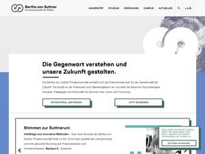 Bertha von Suttner Private universit&aum; t (Bertha von Suttner Private University)成立于2018年,是一所私立高等教育機構(gòu),位于下奧地利小城市St. Pölten(人口50,000-249,999居民)。Bertha von Suttner私立大學(xué)是一所男女同校的奧地利高等教育機構(gòu),由奧地利聯(lián)邦教育、科學(xué)和研究部正式承認。Bertha von Suttner私立大學(xué)提供課程和項目,導(dǎo)致官方承認的高等教育學(xué)位,如在幾個研究領(lǐng)域的學(xué)士學(xué)位。詳情請參閱下面的uniRank學(xué)位水平和學(xué)習(xí)領(lǐng)域矩陣。Bertha von Suttner私立大學(xué)也為學(xué)生提供一些學(xué)術(shù)和非學(xué)術(shù)設(shè)施和服務(wù),包括圖書館,以及行政服務(wù)。