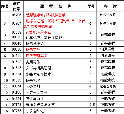 計算機應用基礎,實用寫作,文書與檔案管理,公共關系實務,秘書學概論