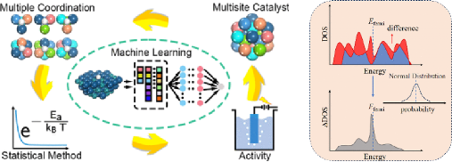 無序固溶體合金具有豐富的催化位點,因此可以被用于催化多種重要的化學反應。然而,也正是由于其多位點的特性,給此類催化劑活性位點的局部結構解析和總體活性的理論預測帶來巨大的挑戰。具體表現在,模擬時采用隨機位點策略,數據量龐大,需要消耗大量的計算資源,且難以直接分析結果。使用機器學習輔助密度泛函理論計算的策略已被證實可以大幅提高計算效率,同時多種統計方法也在部分合金催化體系中被證明是分析大量數據的有力工具。然而,目前對于無序固溶體合金的研究對于總體活性的計算方法仍不全面。因此,發展有效、準確的多位點合金催化劑總體活性的計算描述方法是指導實驗上實現合金組分和比例篩選、可控合成的關鍵。