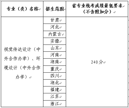 (三)視覺傳達設計(中外合作辦學)和環境設計(中外合作辦學)專業只錄取填報相關專業志愿的學生(含服從兩個專業間調劑的學生),入校后不允許轉入非中外合作辦學專業。